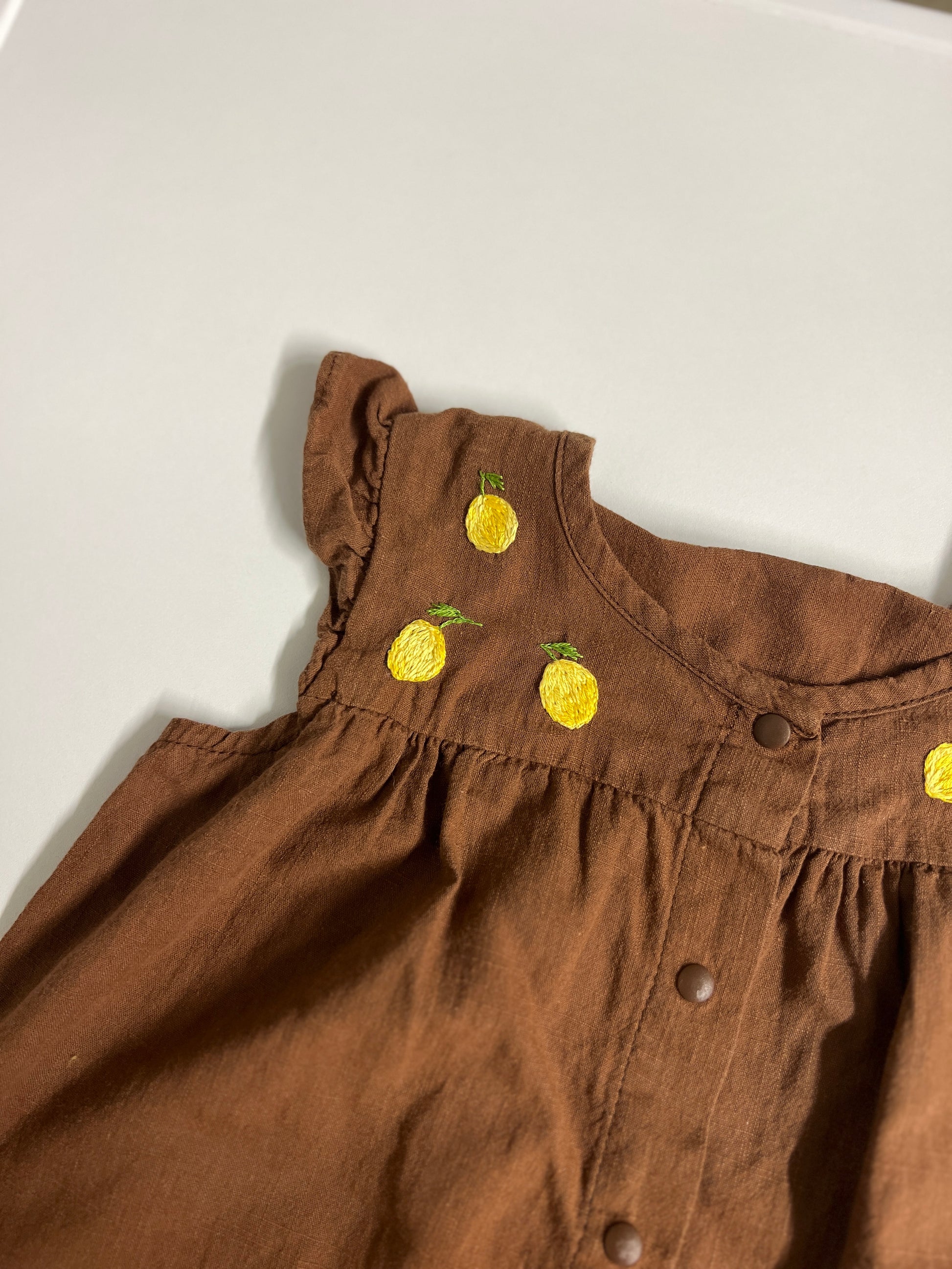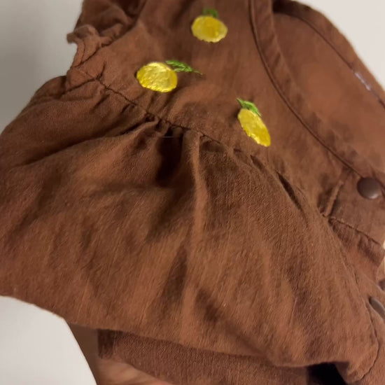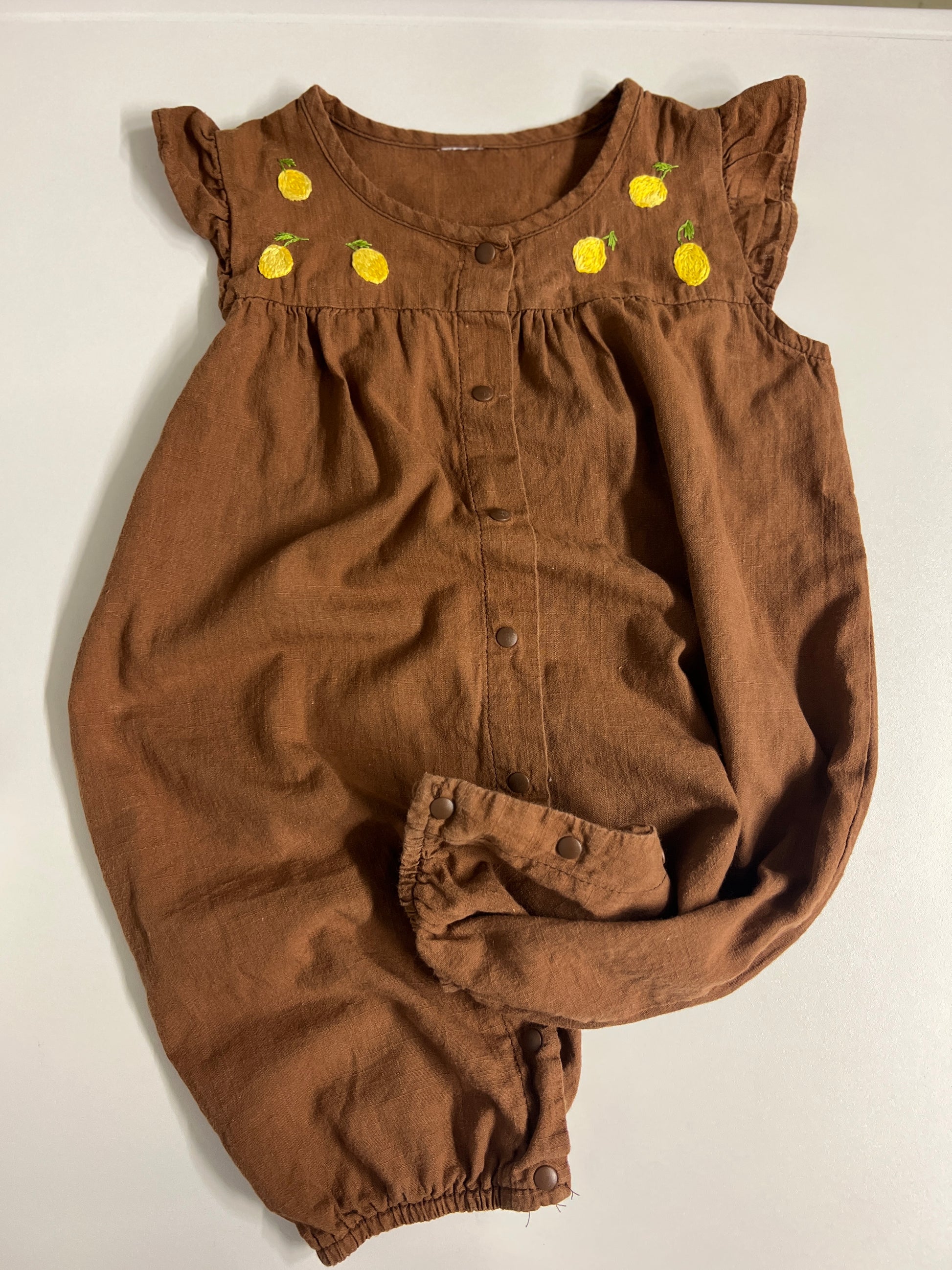 Hand-Embroidered Lemon Romper in Brown | Size 74/86 (9-12 months)